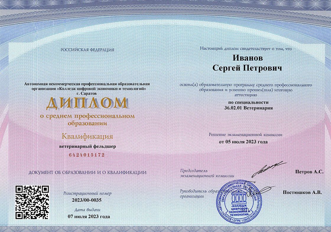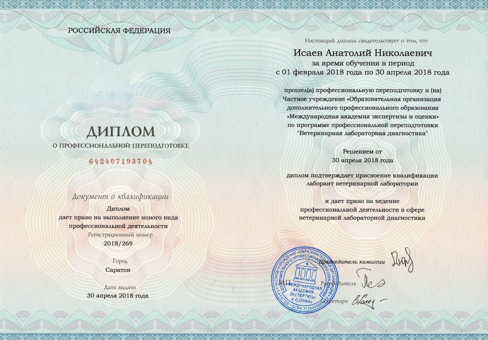 Квалификация: Ветеринарный фельдшер.