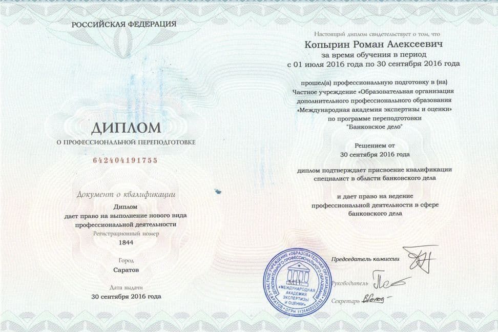 Квалификация: Финансист.