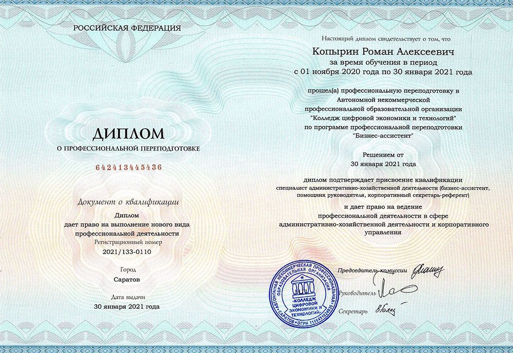 Квалификация по диплому: специалист административно-хозяйственной деятельности (бизнес-ассистент, помощник руководителя, корпоративный секретарь-референт).