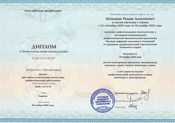 Квалификация по диплому: экономист, юрист, педагог экономики и права.
