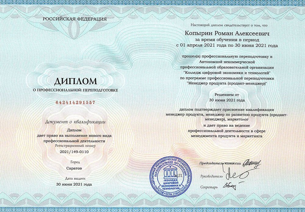 Квалификация по диплому: менеджер продукта, менеджер по развитию продукта (продакт-менеджер), маркетолог.